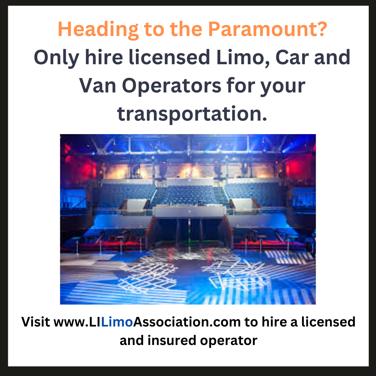 Heading to The Paramount in Huntington this Saturday to listen to the “Best Of The Eagles”? Only hire a licensed car, van, or limo operator to get you there safely so you can enjoy “Hotel California,” “Desperado,” “Take It Easy,” and many other 1970’s hits from America’s Top Eagles Tribute Band. #LILimoAssociation #LILA #SafetyFirst #DotheRightThing #HireLicensed