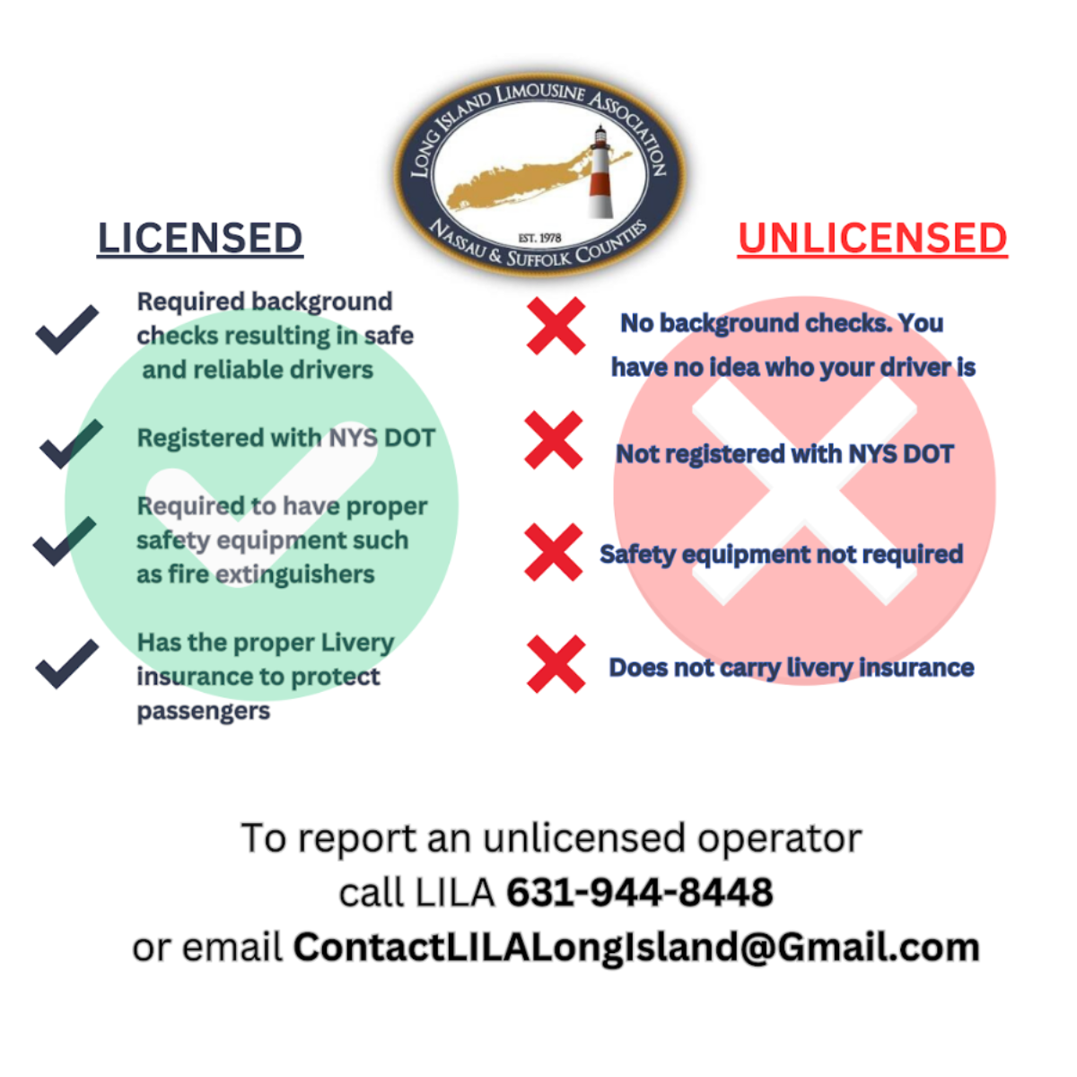 Protect Yourself and Don’t Ride with Risk. The Long Island Limousine Association (LILA) is reminding all riders: Never hire unlicensed car, van, or limousine operators.
