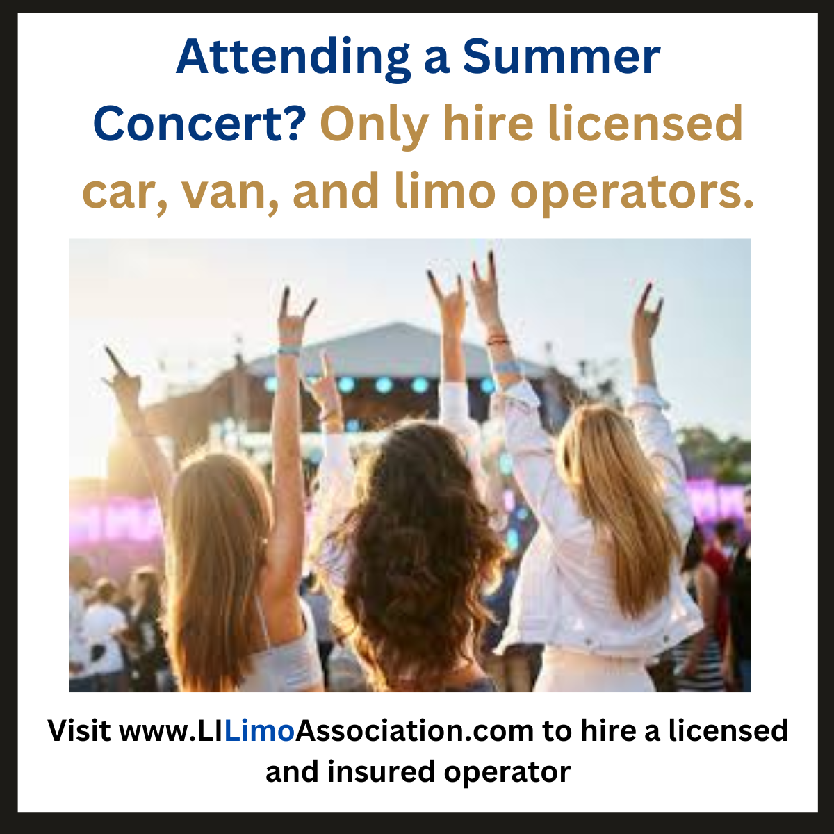 Still have concerts on your summer calendar? Make it a night and ride to remember by hiring a licensed car, limousine or van operator to get you and your guests there safely and in style.